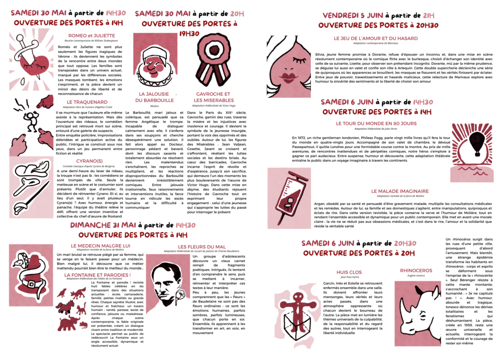 DU 30 AU 31 MAI, PUIS DU 5 AU 7 JUIN, VENEZ DÉCOUVRIR UNE PROGRAMMATION RICHE, VIBRANTE ET INTERGÉNÉRATIONNELLE, OÙ LES GRANDS TEXTES DU RÉPERTOIRE RENCONTRENT L’ÉNERGIE ET LA SENSIBILITÉ DES INTERPRÈTES D’AUJOURD’HUI.