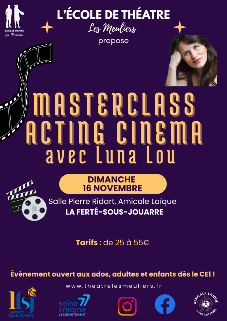 L’actrice talentueuse de cinéma et séries TV a l’immense honneur de vous accueillir, au sein de l’Ecole de Théâtre Les Meuliers pour une nouvelle date de masterclass en acting cinéma.